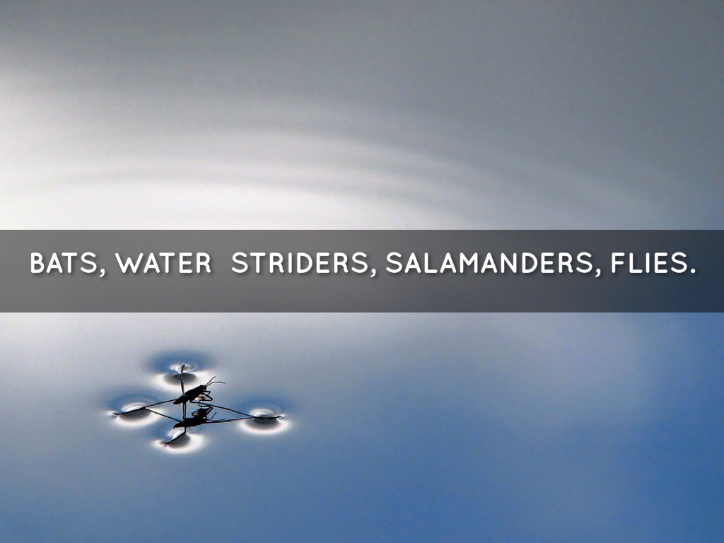 BATS, WATER STRIDERS, SALAMANDERS, FLIES.