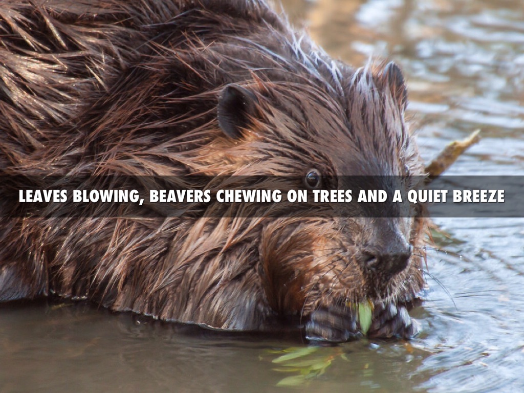 LEAVES BLOWING, BEAVERS CHEWING ON TREES AND A QUIET BREEZE