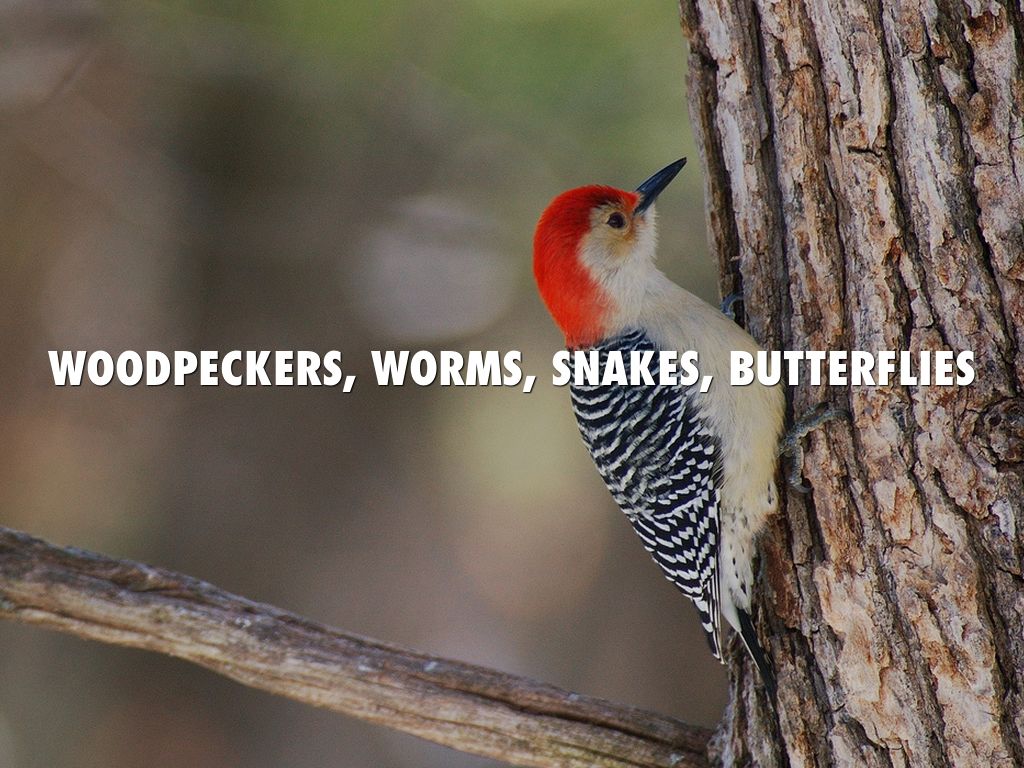 WOODPECKERS, WORMS, SNAKES, BUTTERFLIES