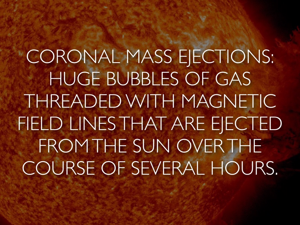 HUGE BUBBLES OF GAS THREADED WITH MAGNETIC FIELD LINES THAT ARE EJECTED FROM THE SUN OVER THE COURSE OF SEVERAL HOURS.
