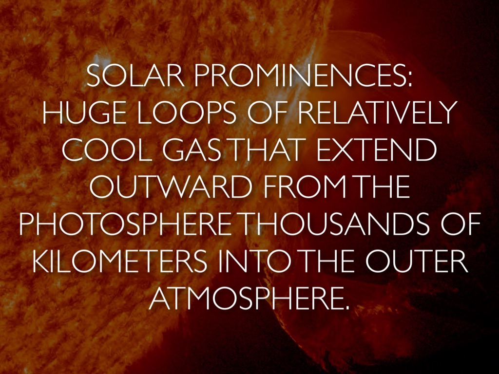 HUGE LOOPS OF RELATIVELY COOL GAS THAT EXTEND OUTWARD FROM THE PHOTOSPHERE THOUSANDS OF KILOMETERS INTO THE OUTER ATMOSPHERE.