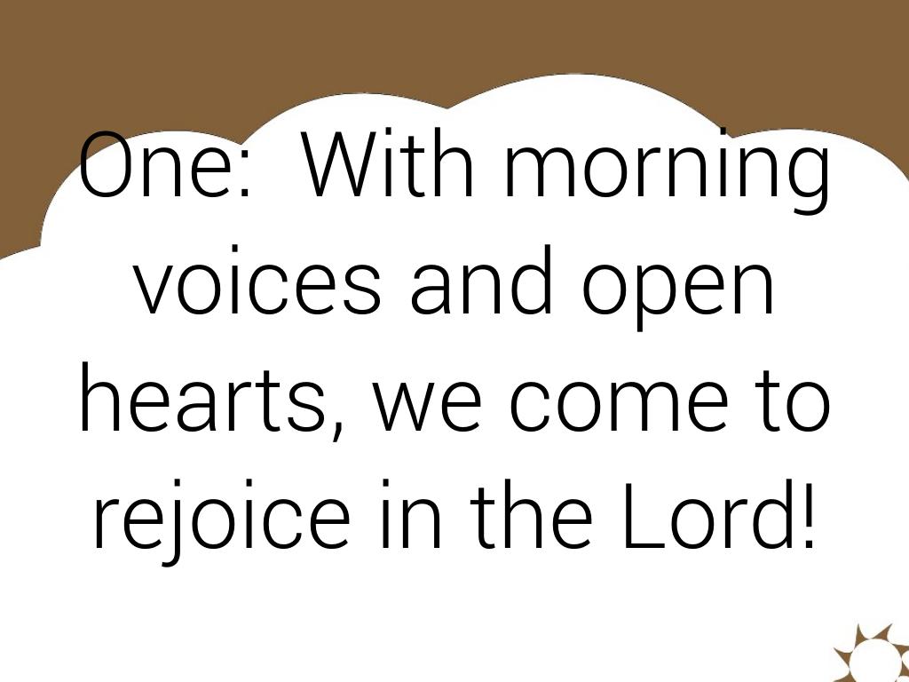 One: With morning voices and open hearts, we come to rejoice in the Lord!