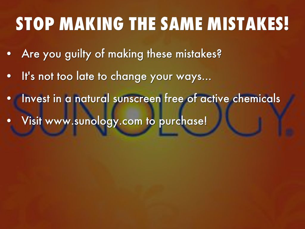 Proper skincare treatment and protection from the sun is crucial. Many people know the importance of using sunscreen, yet few people are aware of when and how to use it for best results. Are you guilty of making any of these sunscreen mistakes? If so, it's time to make changes. You can start by investing in a natural sunscreen product that is free of active ingredients and will help you restore and maintain the health of your skin. Visit http://www.sunology.com/ to purchase a natural sunscreen product today!