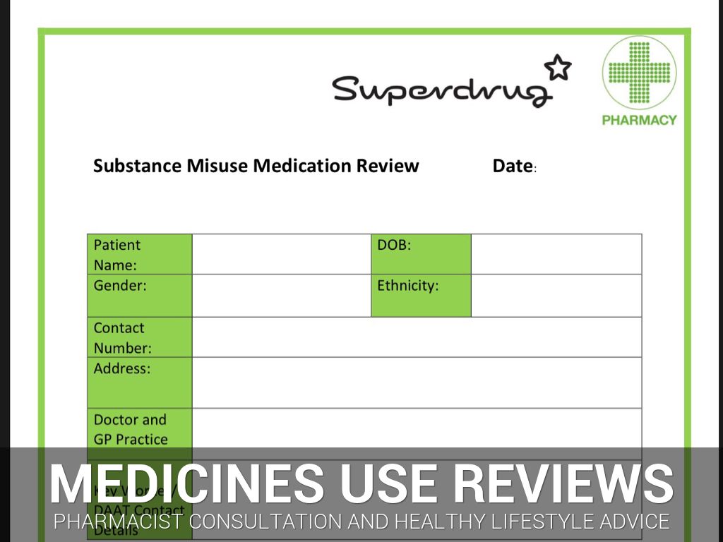 Our pharmacists conduct medicines use reviews with patients using a template tailored to their needs. The review addresses issues around repeat medications, 'over the counter' medicines, herbal medicines and recreational drugs. The review also covers medication compliance, and our pharmacists will support patients to adhere to their individual treatment regimen. There is also a strong focus on healthy lifestyle issues to encourage patients to make positive changes to their diet, exercise, alcohol consumption and smoking status.