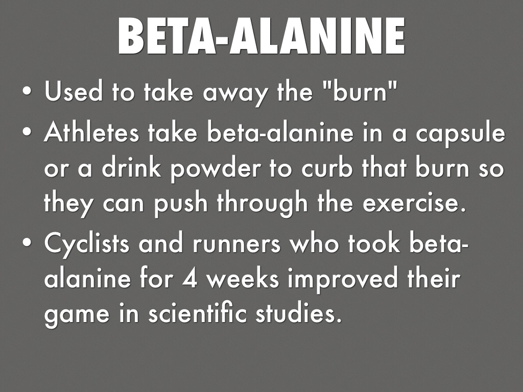 • Athletes take beta-alanine in a capsule or a drink powder to curb that burn so they can push through the exercise.