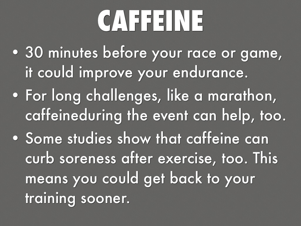 • Some studies show that caffeine can curb soreness after exercise, too. This means you could get back to your training sooner.
