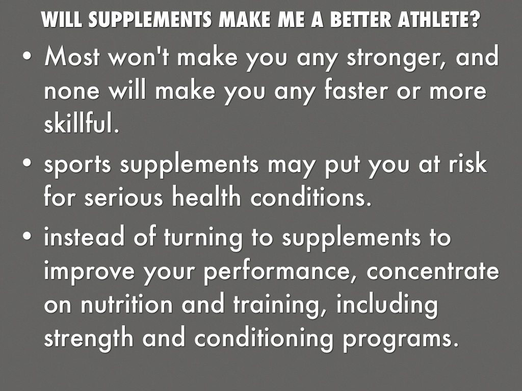 • instead of turning to supplements to improve your performance, concentrate on nutrition and training, including strength and conditioning programs.