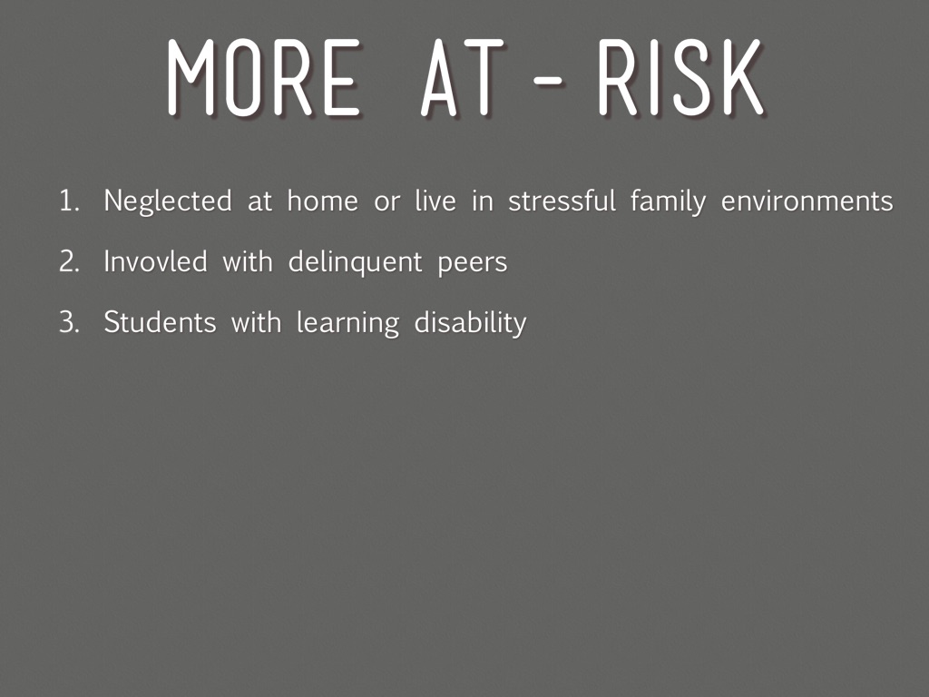 The National Center for School Engagement defines at-risk youth as: