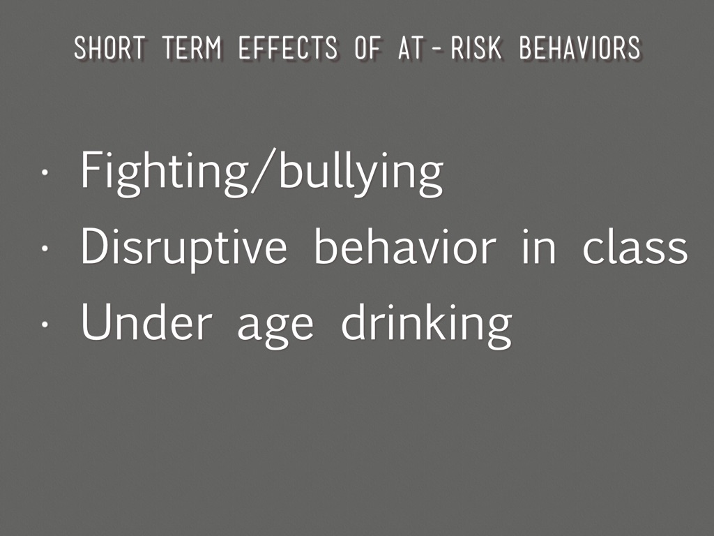 SHORT TERM EFFECTS OF AT-RISK BEHAVIORS