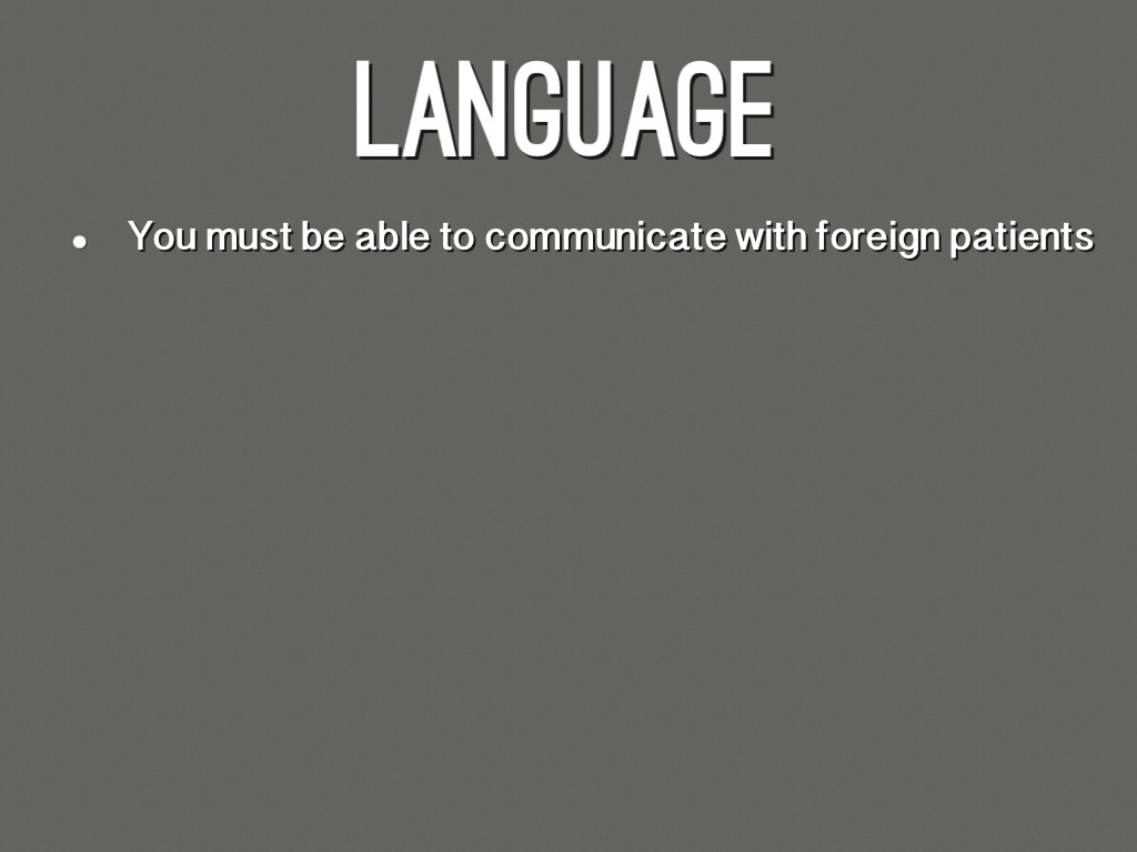 • You must be able to communicate with foreign patients