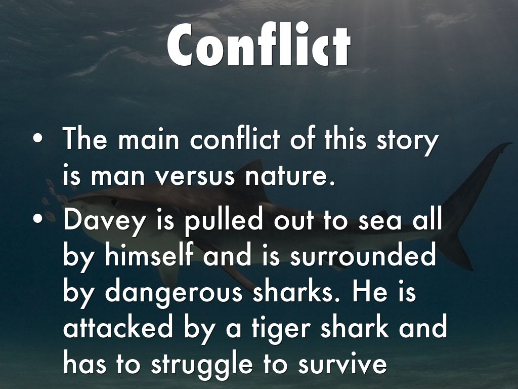 • Davey is pulled out to sea all by himself and is surrounded by dangerous sharks. He is attacked by a tiger shark and has to struggle to survive