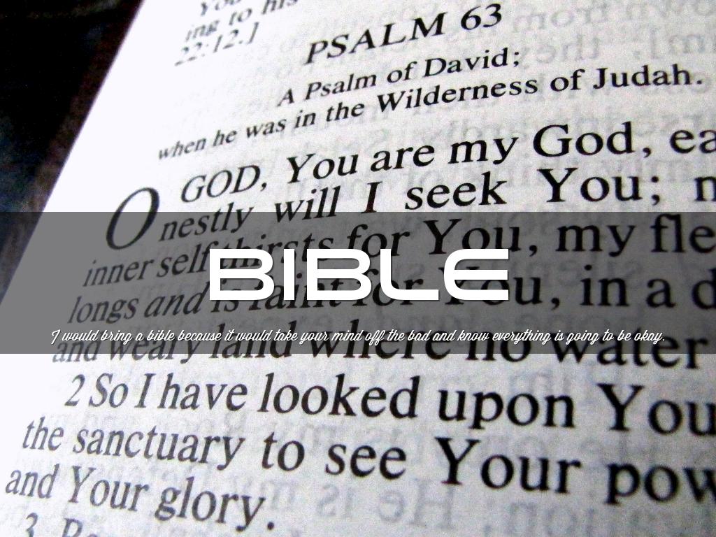 I would bring a bible because it would take your mind off the bad and know everything is going to be okay.