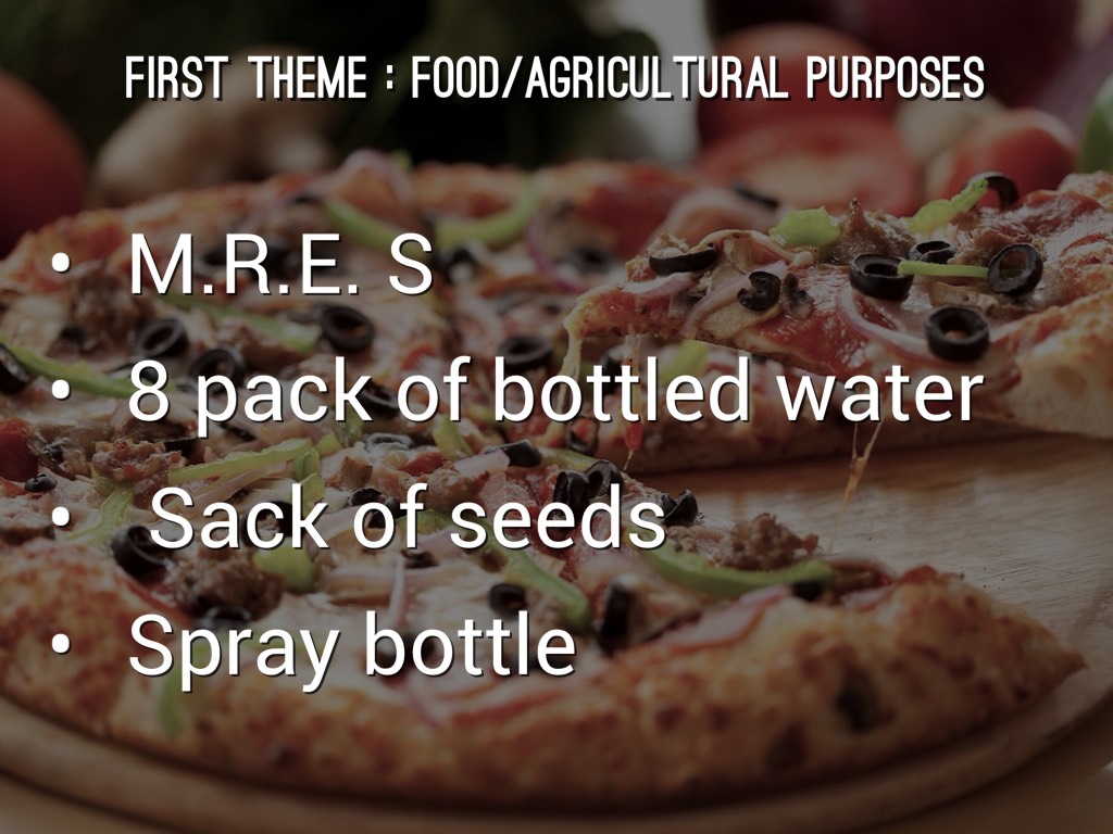 FIRST THEME : FOOD/AGRICULTURAL PURPOSES