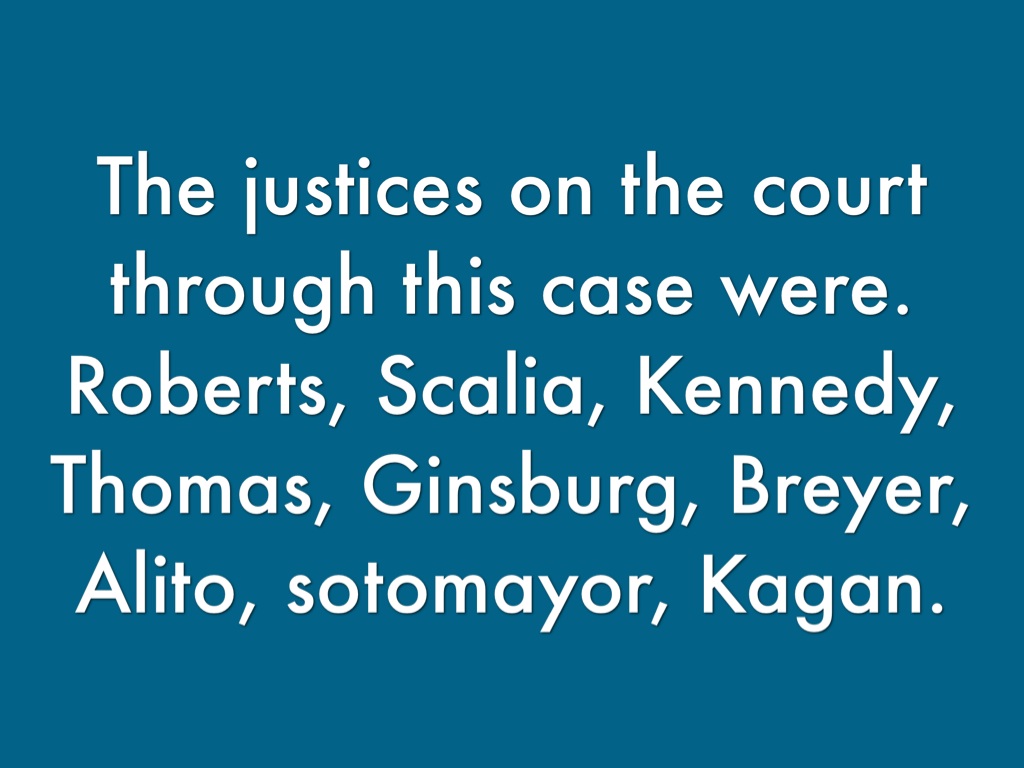 The justices on the court through this case were. Roberts, Scalia, Kennedy, Thomas, Ginsburg, Breyer, Alito, sotomayor, Kagan.