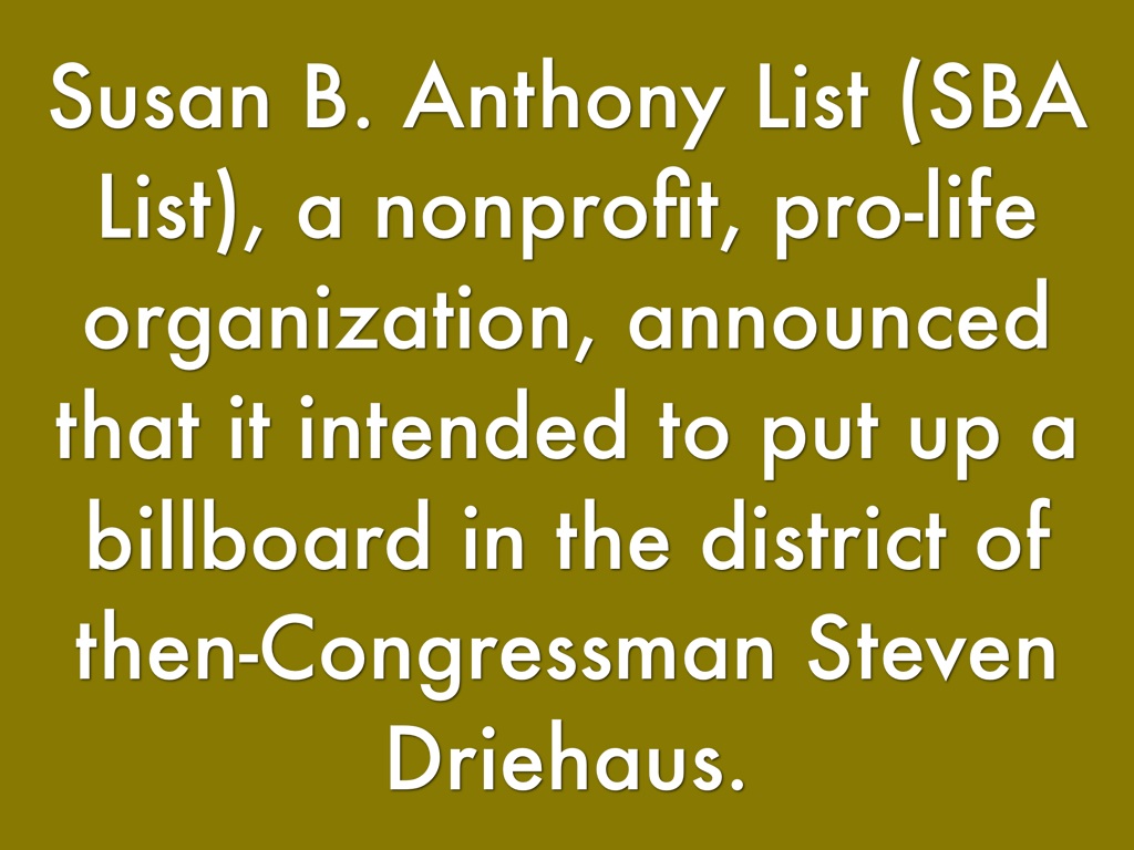 Susan B. Anthony List (SBA List), a nonprofit, pro-life organization, announced that it intended to put up a billboard in the district of then-Congressman Steven Driehaus.
