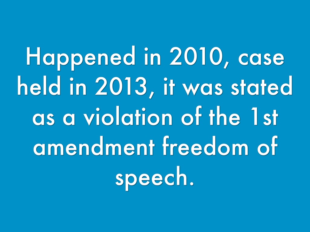 Happened in 2010, case held in 2013, it was stated as a violation of the 1st amendment freedom of speech.