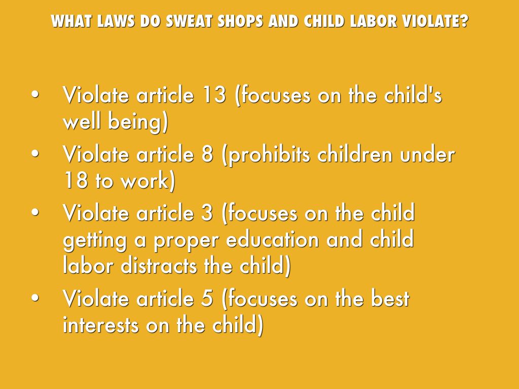 Both Child Labor and Sweat Shops negatively impact our world today. Many countries are taking measures to stop it and prevent the expansion because it destroys the economies of nations.