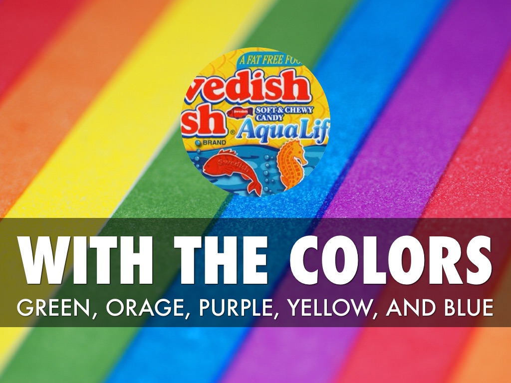 GREEN, ORAGE, PURPLE, YELLOW, AND BLUE