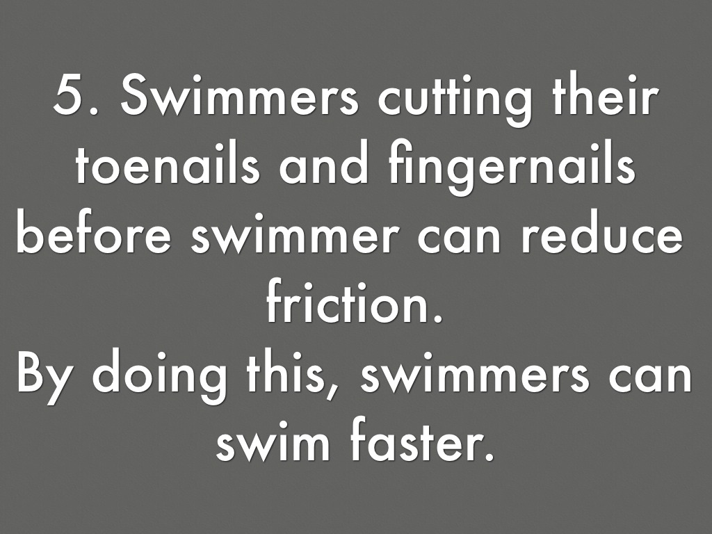 5. Swimmers cutting their toenails and fingernails before swimmer can reduce friction.