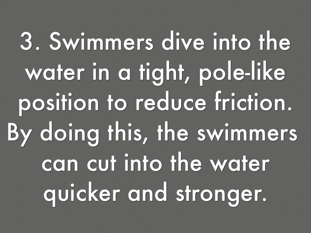 3. Swimmers dive into the water in a tight, pole-like position to reduce friction.