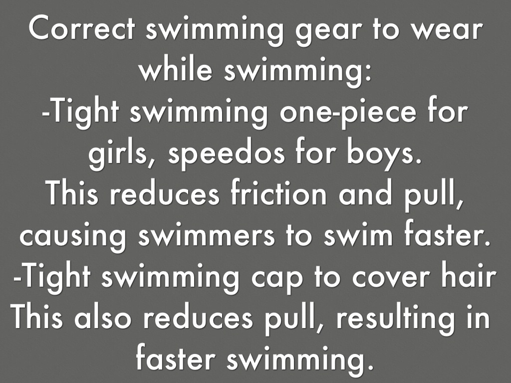 By wearing tight swimwear, you can shoot faster through the water.