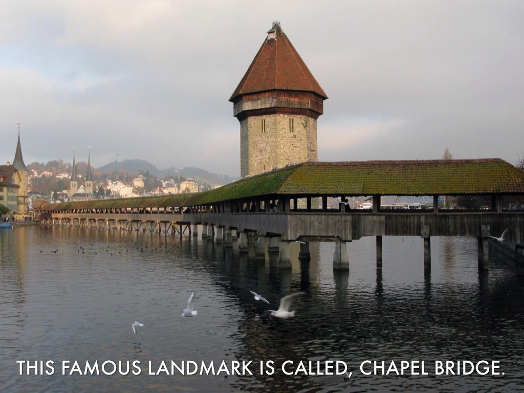 THIS FAMOUS LANDMARK IS CALLED, CHAPEL BRIDGE.