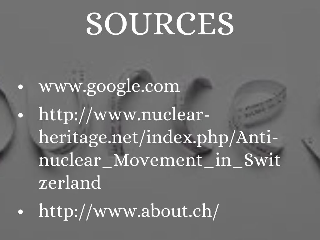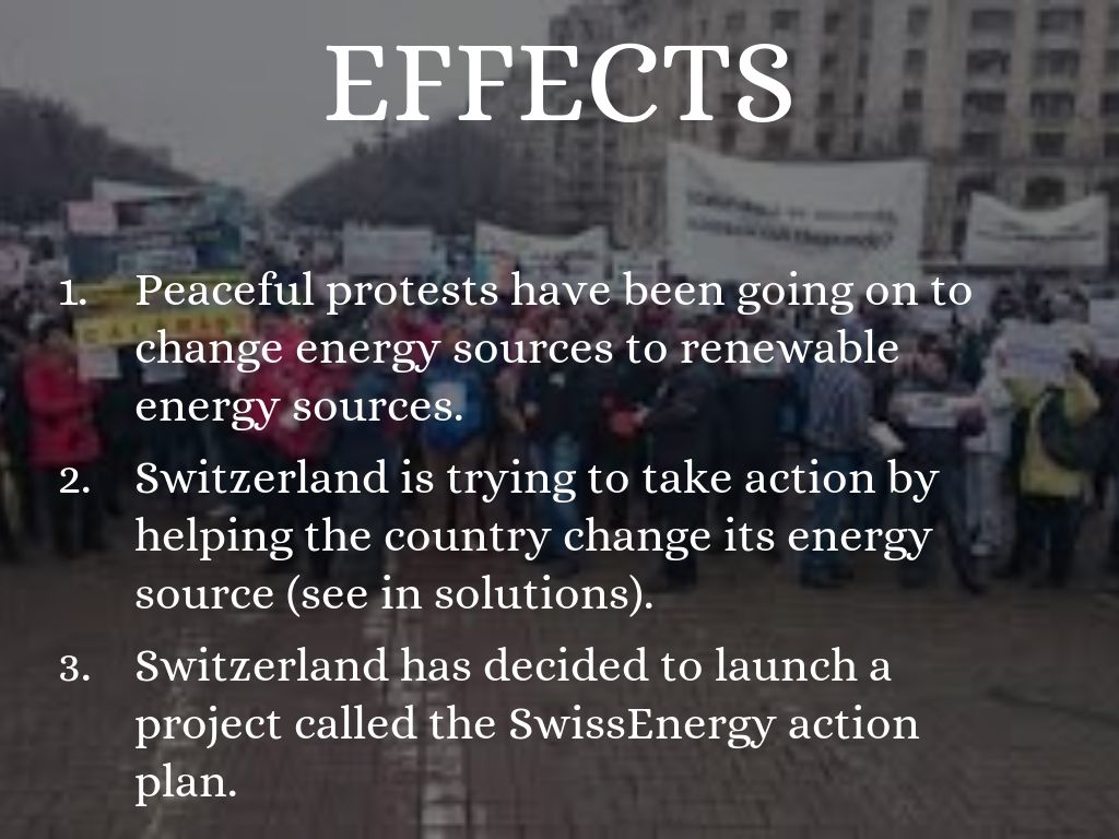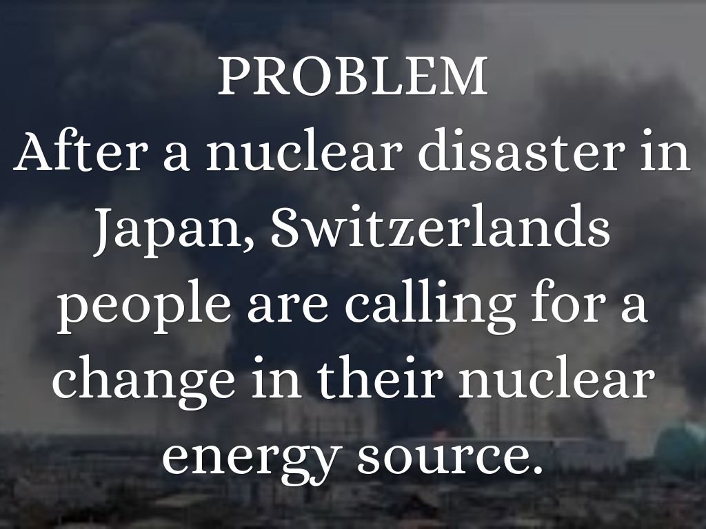 - A nuclear disaster in Japan motivated Switzerland to change energy sources.