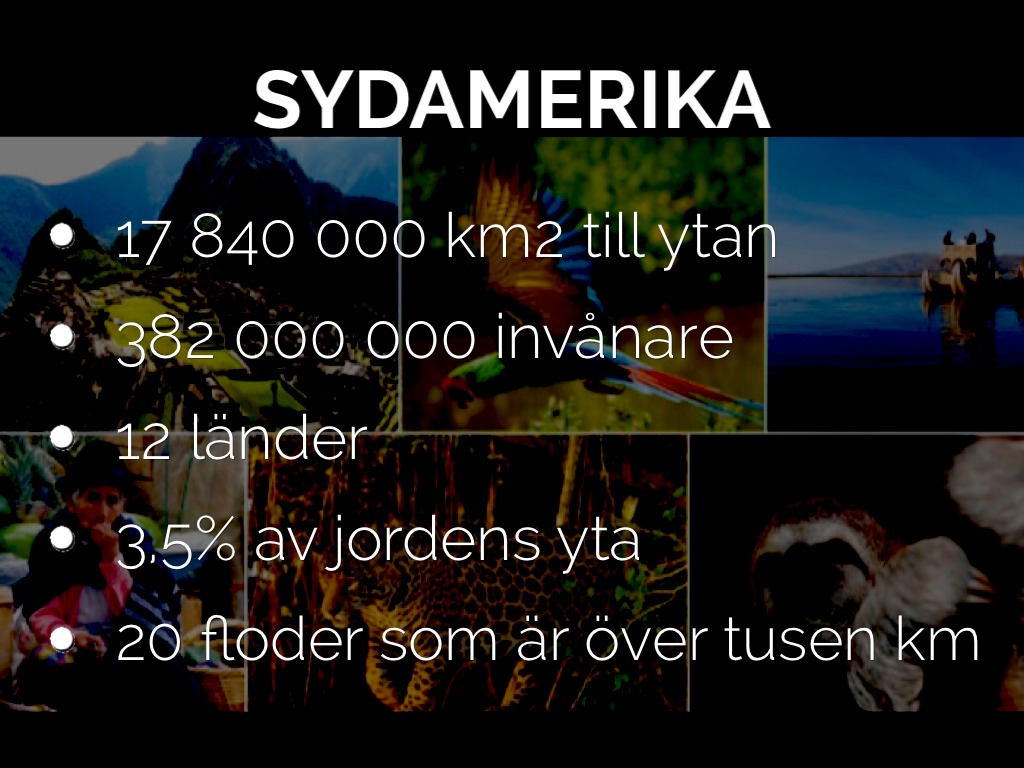 Centrala Sydamerika ex. Peru, Chile, Argentina