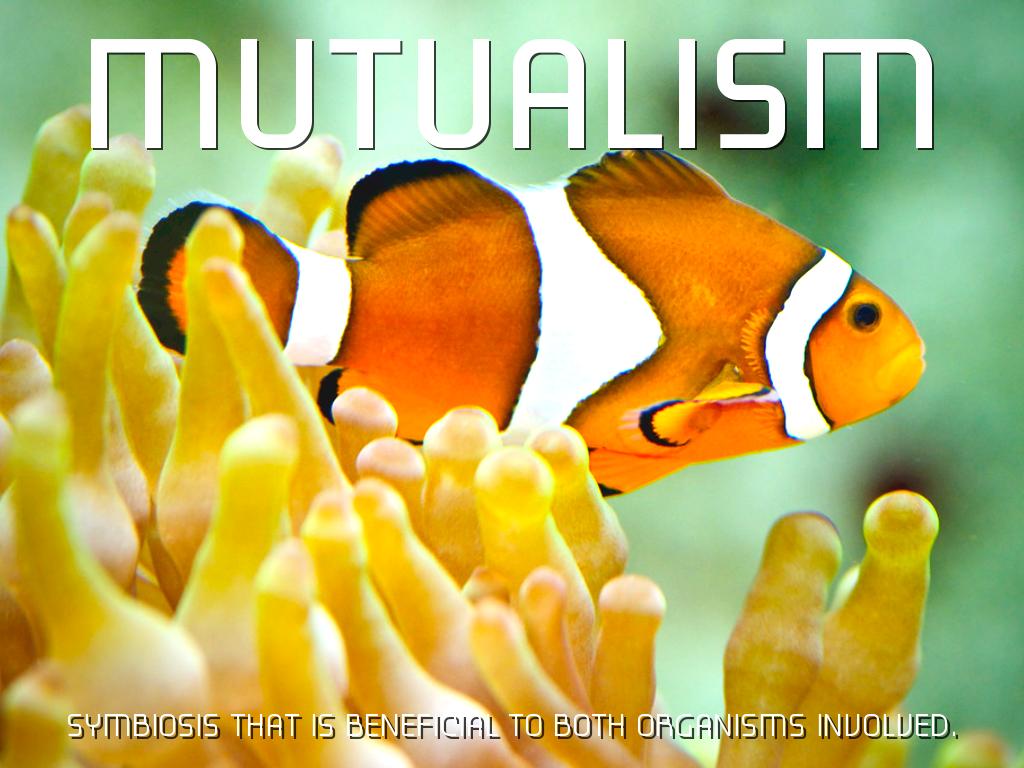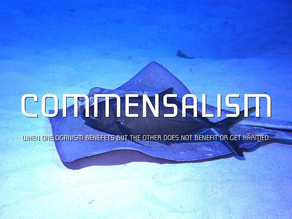 Some small fish have a symbiotic relationship with larger fish because they will hide under the lager fish for protection. In the relationship the smaller fish gets a benefit and the larger fish is not benefited or harmed, therefor this would be called commensalism.