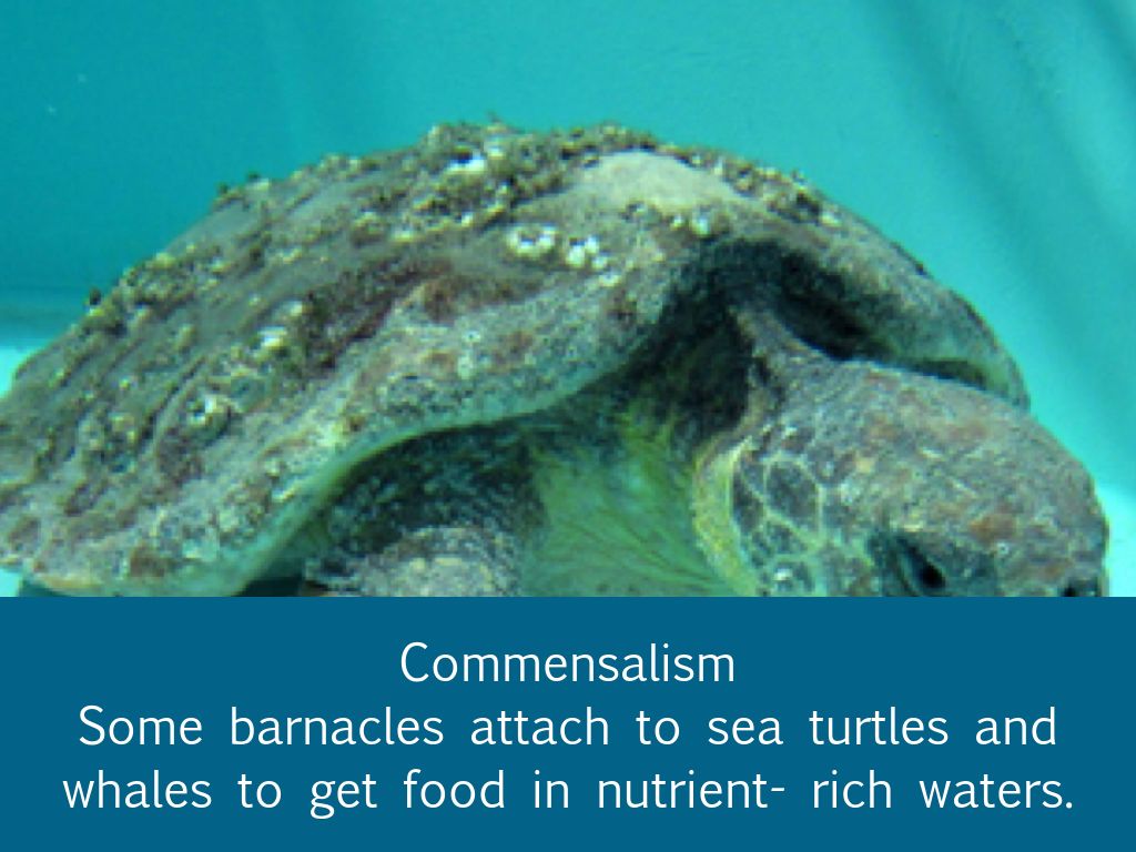 Some barnacles attach to sea turtles and whales to get food in nutrient- rich waters.