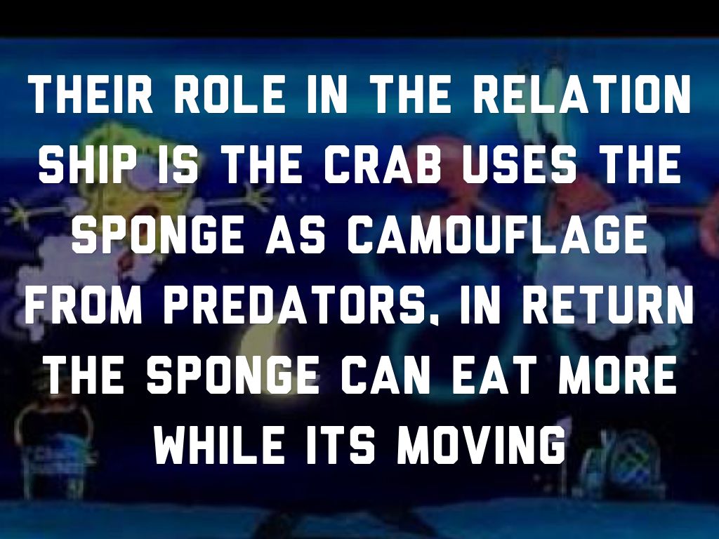 Their role in the relation ship is the crab uses the sponge as camouflage from predators, in return the sponge can eat more while its moving