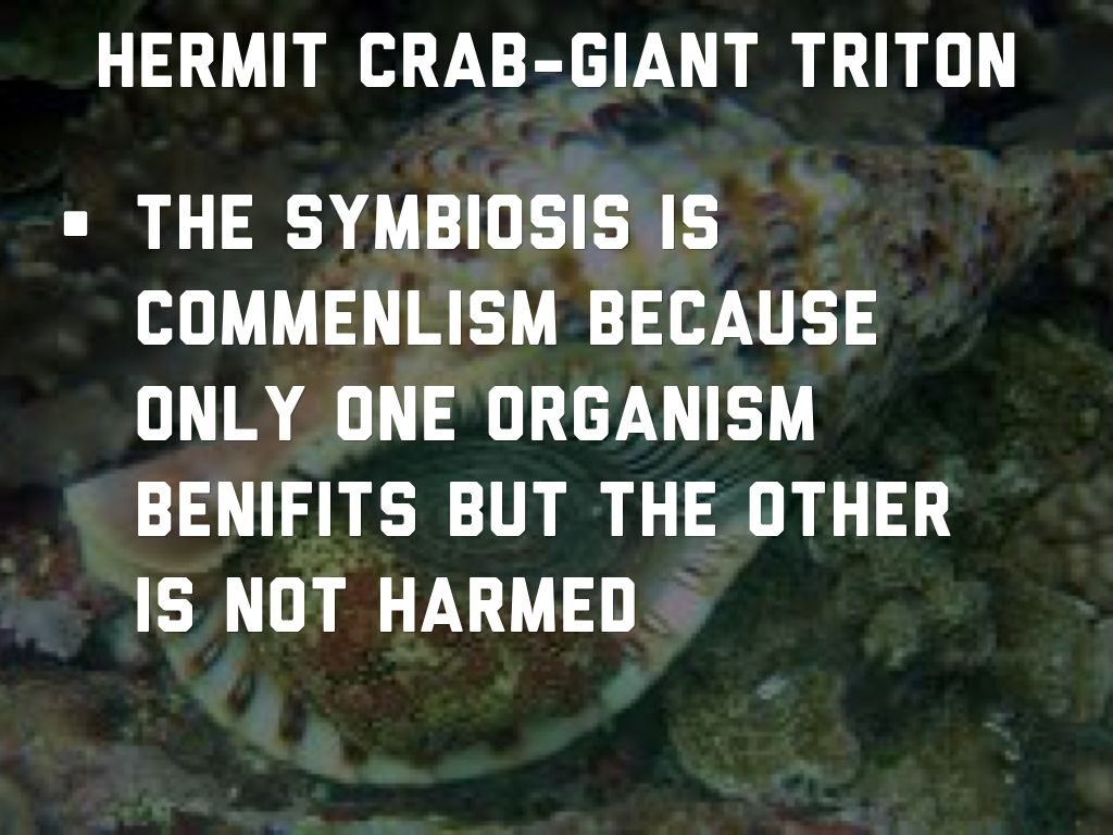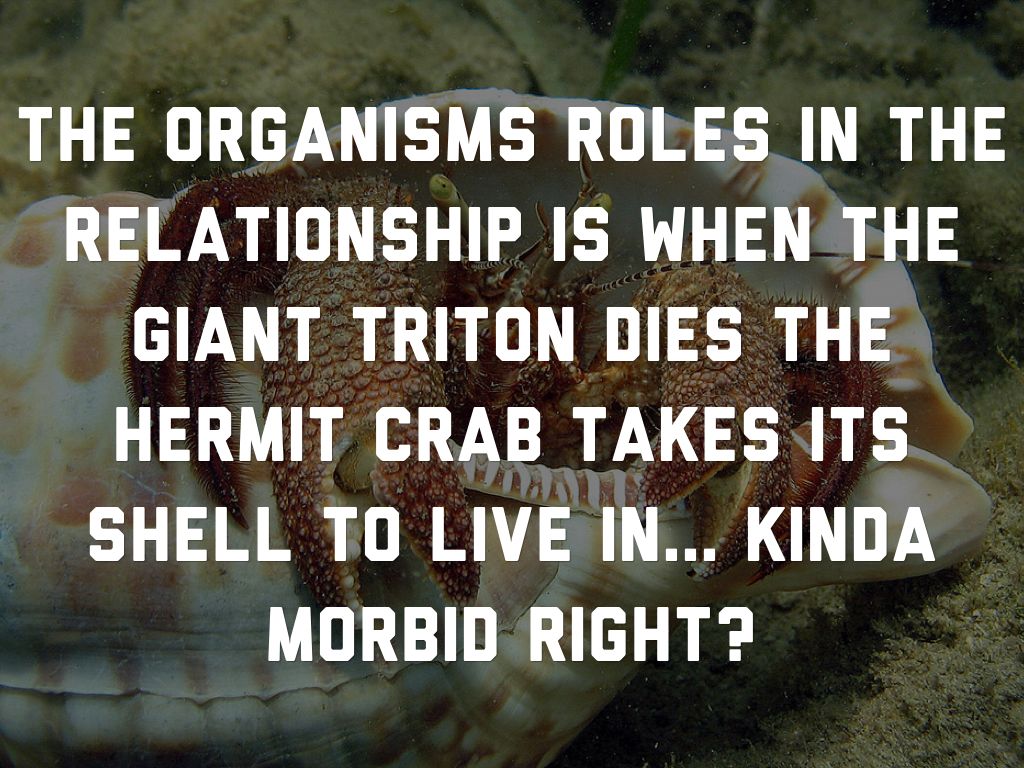 The organisms roles in the relationship is when the giant triton dies the hermit crab takes its shell to live in... Kinda morbid right?