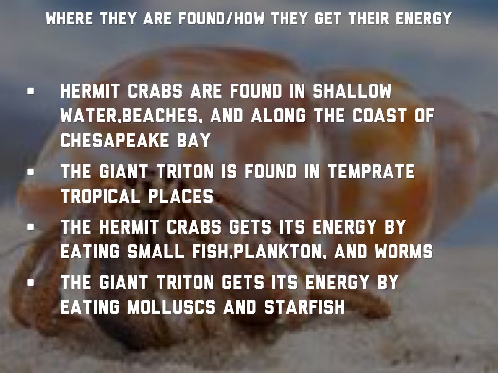 - The hermit crabs gets its energy by eating small fish,plankton, and worms