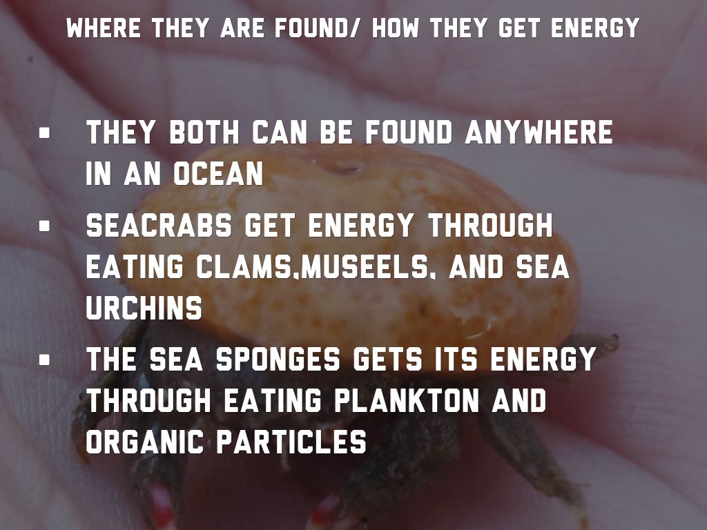 - The sea sponges gets its energy through eating plankton and organic particles