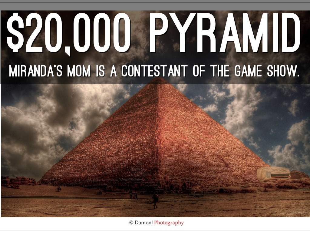 MIRANDA'S MOM IS A CONTESTANT OF THE GAME SHOW.