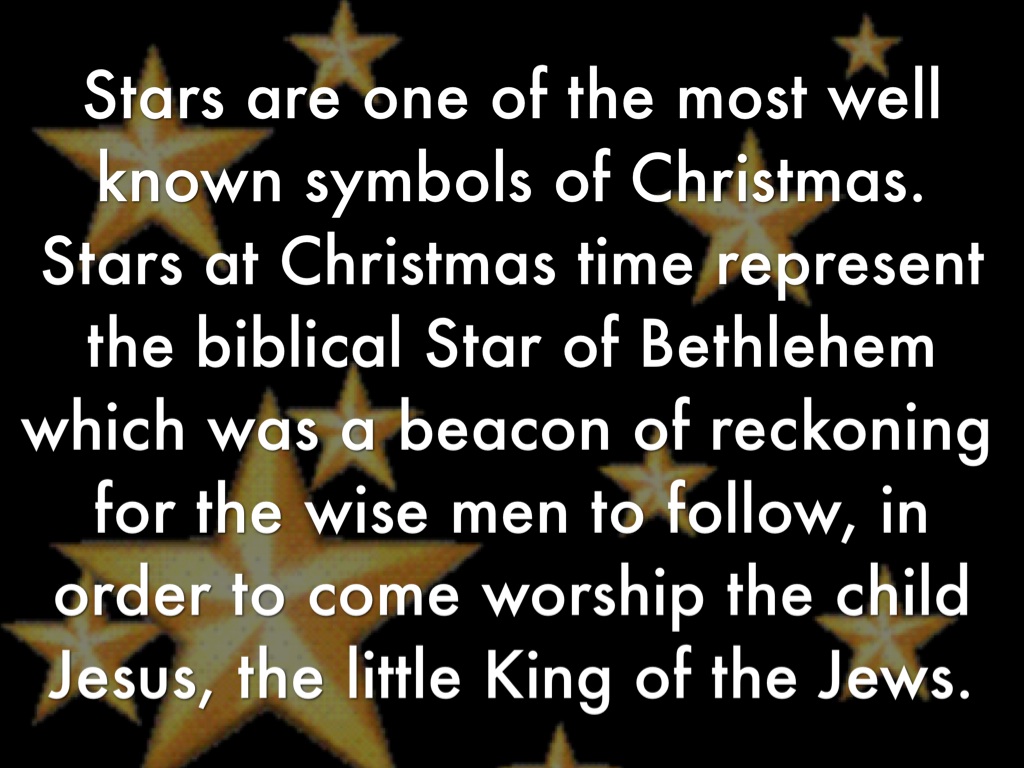 Stars are one of the most well known symbols of Christmas. Stars at Christmas time represent the biblical Star of Bethlehem which was a beacon of reckoning for the wise men to follow, in order to come worship the child Jesus, the little King of the Jews.