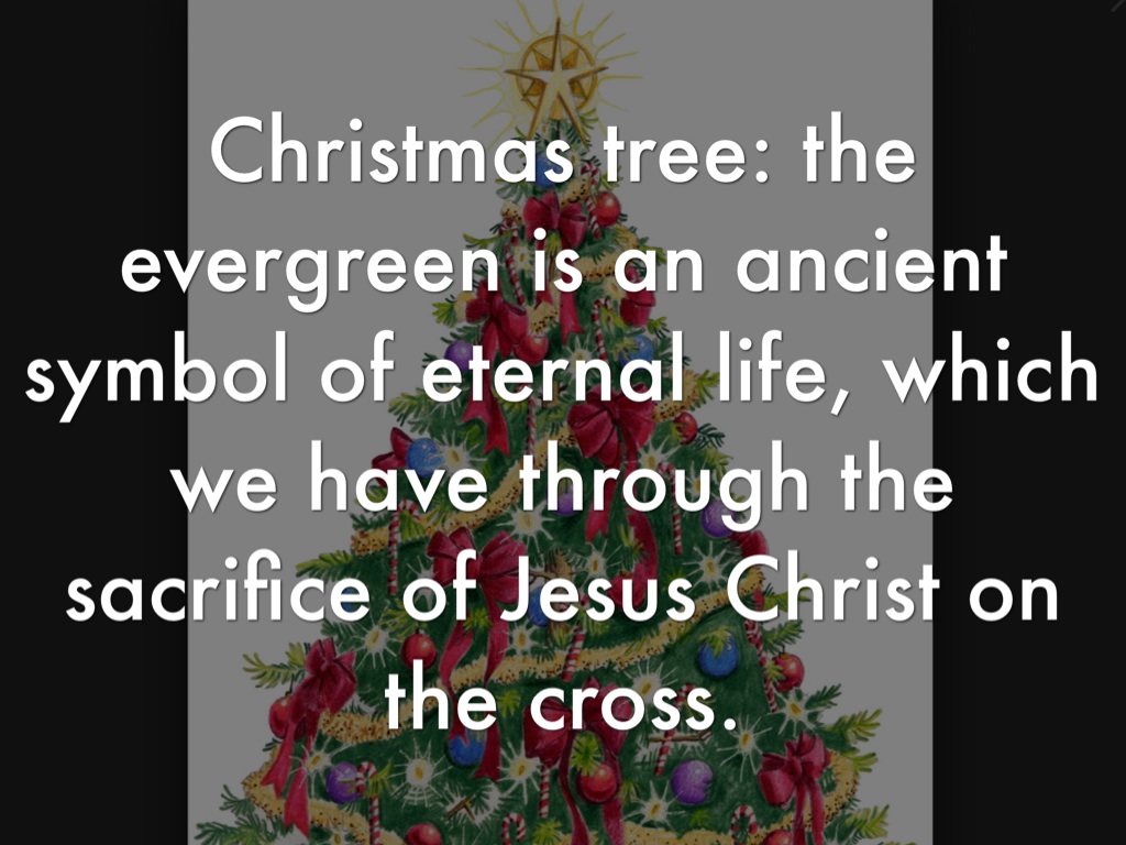 Christmas tree: the evergreen is an ancient symbol of eternal life, which we have through the sacrifice of Jesus Christ on the cross.
