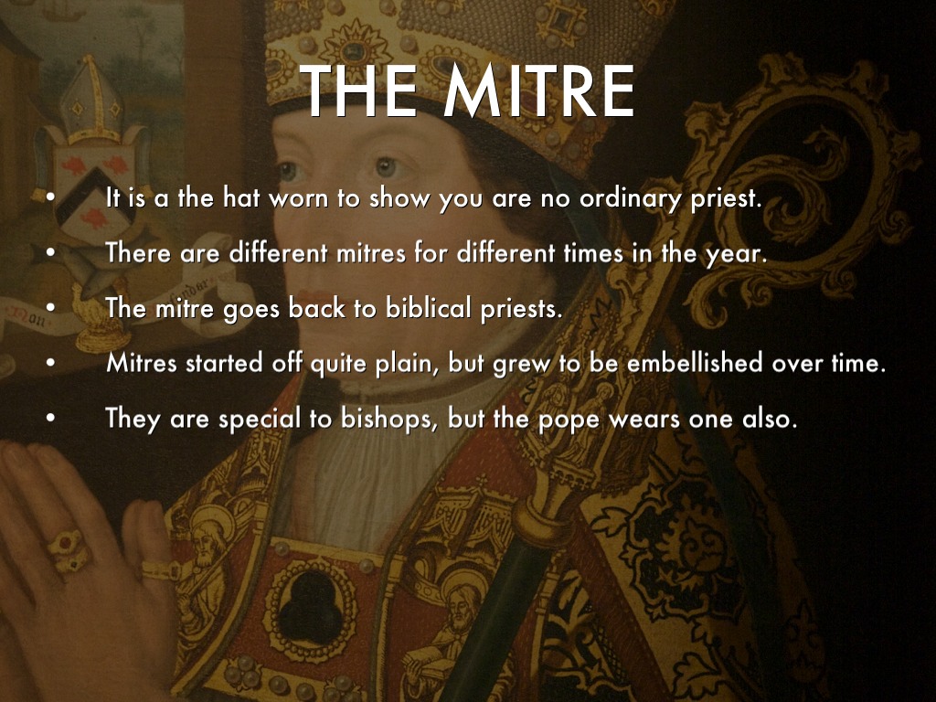 IS THE HAT THAT BISHOPS WEAR, INCLUDING THE POPE