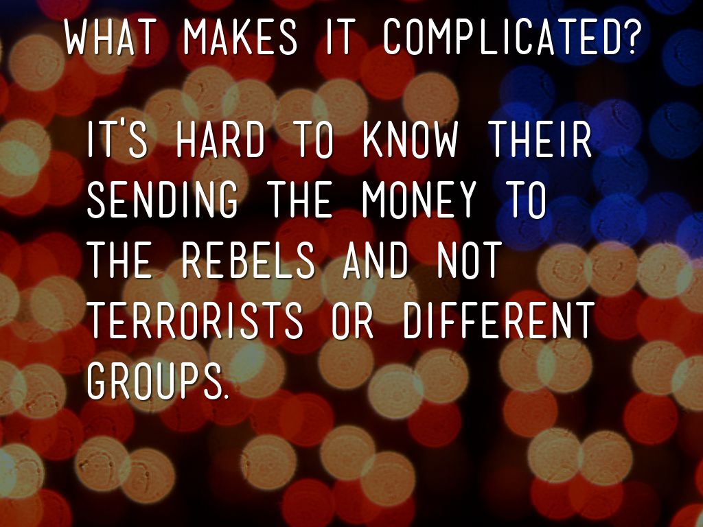 It's hard to know their sending the money to the rebels and not terrorists or different groups.