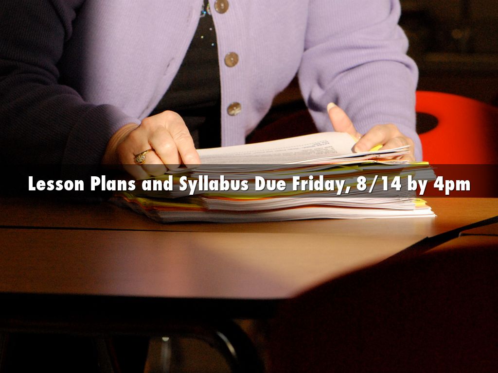 Lesson Plans and Syllabus Due Friday, 8/14 by 4pm