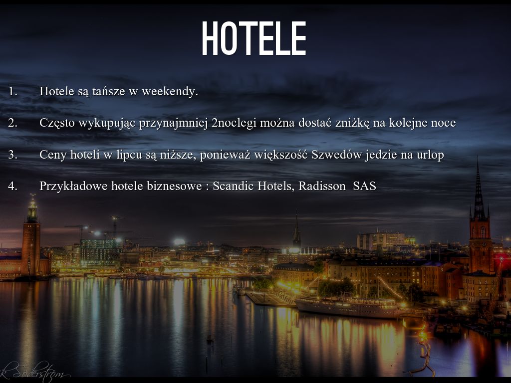 Przykładowe hotele biznesowe : Scandic Hotels, Radisson SAS