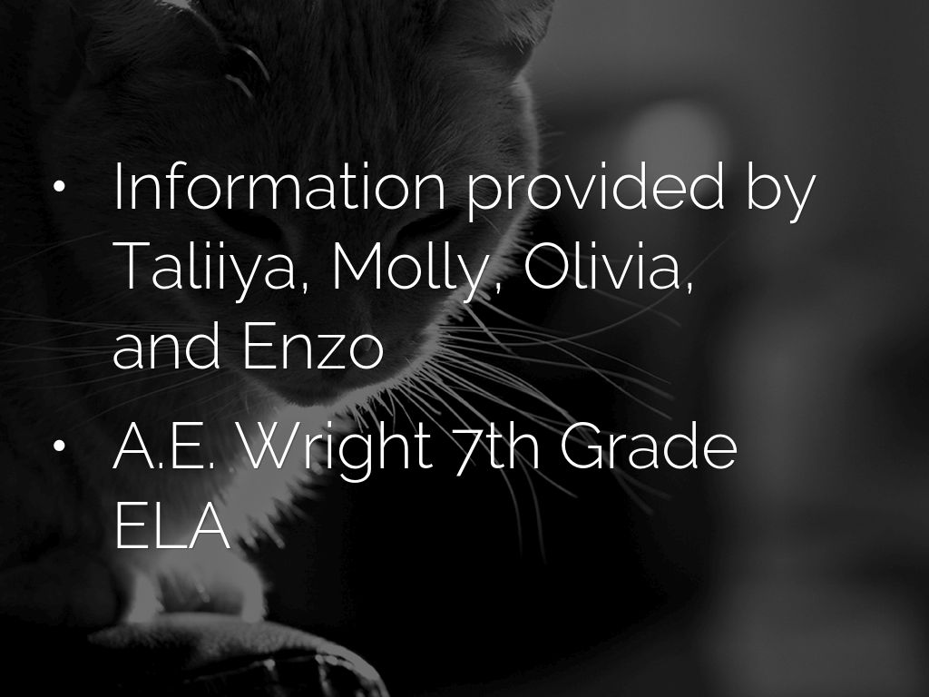 Information provided by Taliiya, Molly, Olivia, and Enzo