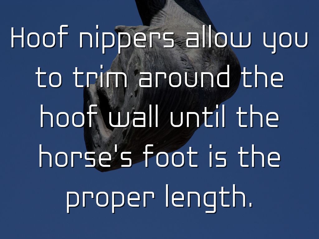 Hoof nippers allow you to trim around the hoof wall until the horse's foot is the proper length.