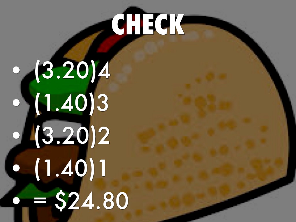 1 taco=$3.20