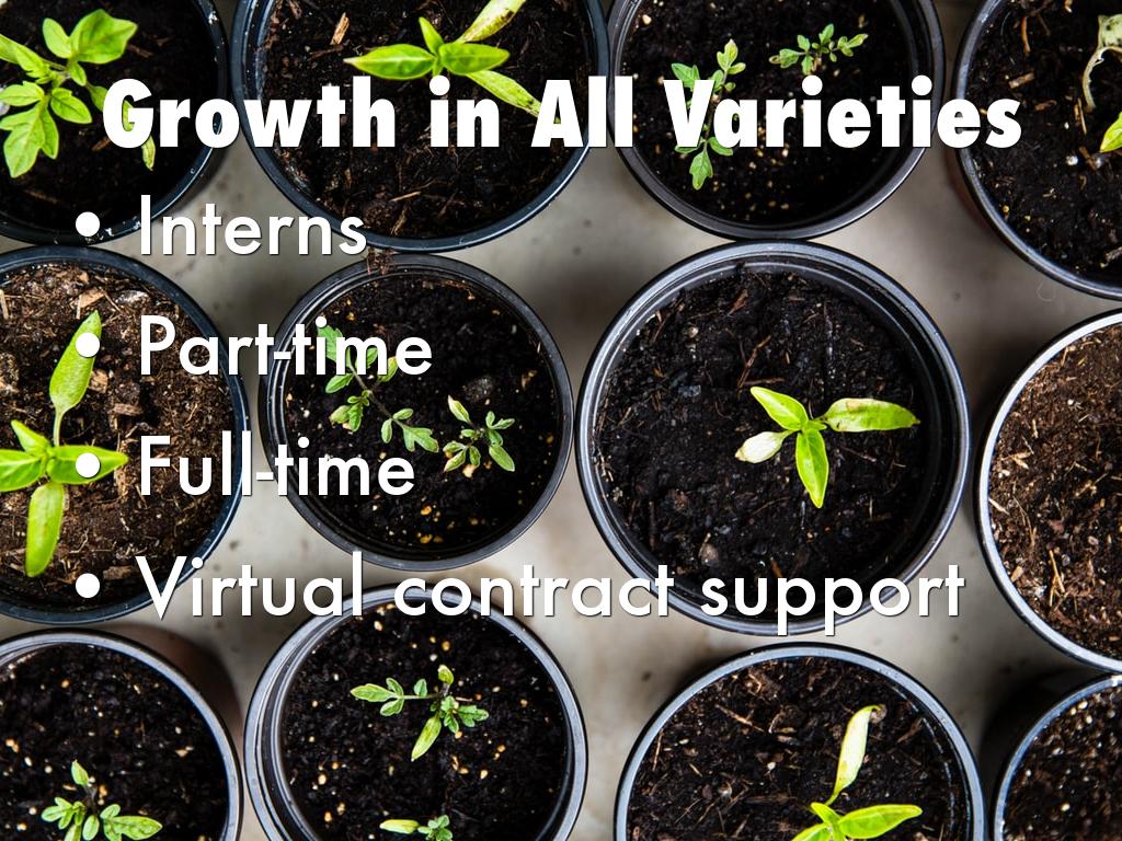 So, in closing, growth comes in all varieties, whether that be interns, part-time or full-time hires or virtual support. I hope you were able to take some practical tips away today to employ no matter what hiring needs you may have in the future.
