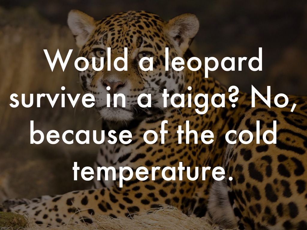 Would a leopard survive in a taiga? No, because of the cold temperature.
