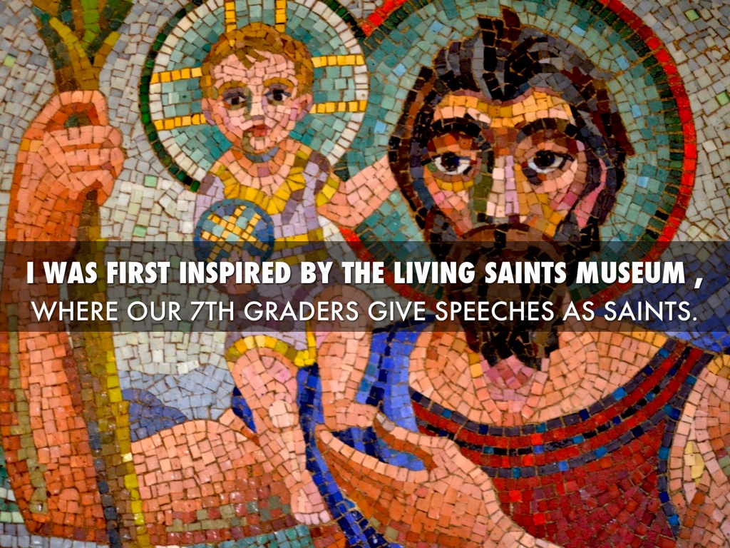 WHERE OUR 7TH GRADERS GIVE SPEECHES AS SAINTS.