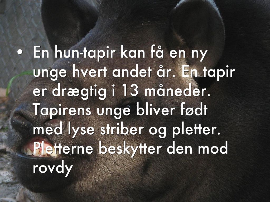 En hun-tapir kan få en ny unge hvert andet år. En tapir er drægtig i 13 måneder. Tapirens unge bliver født med lyse striber og pletter. Pletterne beskytter den mod rovdy