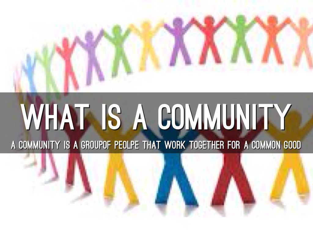 A COMMUNITY IS A GROUPOF PEOLPE THAT WORK TOGETHER FOR A COMMON GOOD