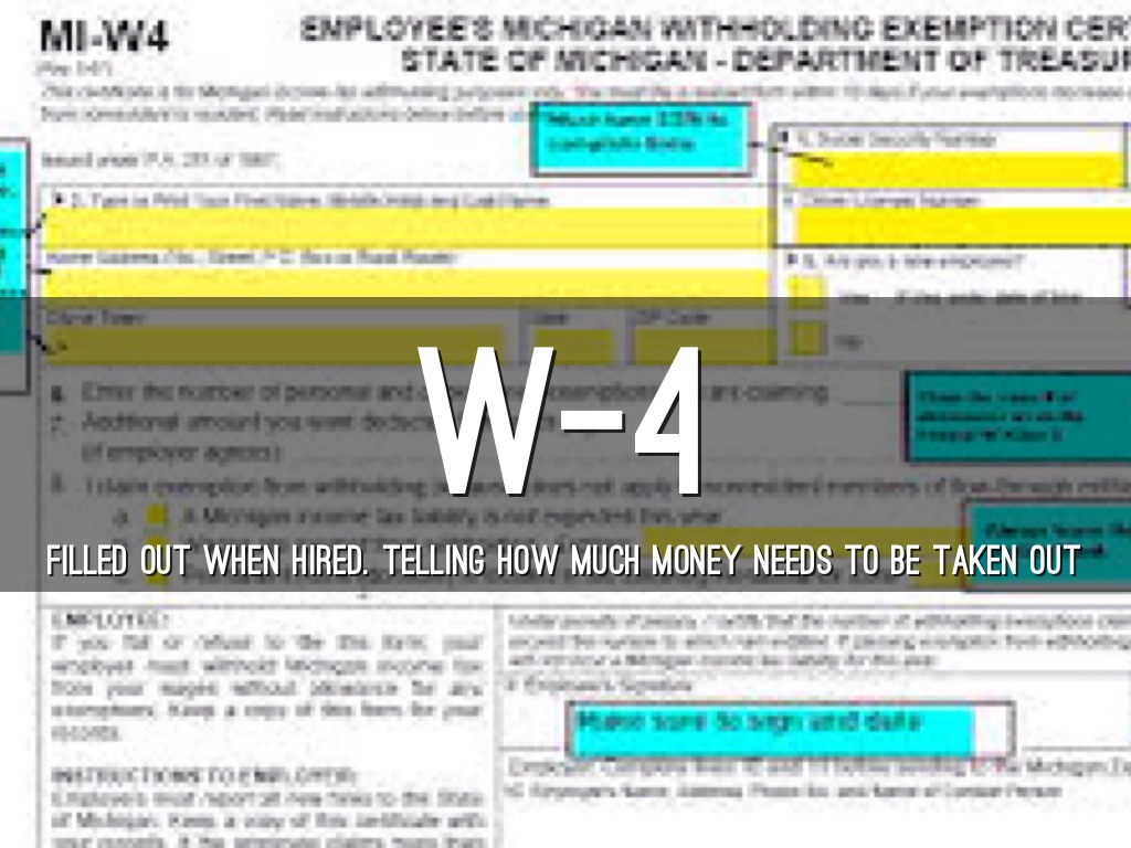 FILLED OUT WHEN HIRED. TELLING HOW MUCH MONEY NEEDS TO BE TAKEN OUT